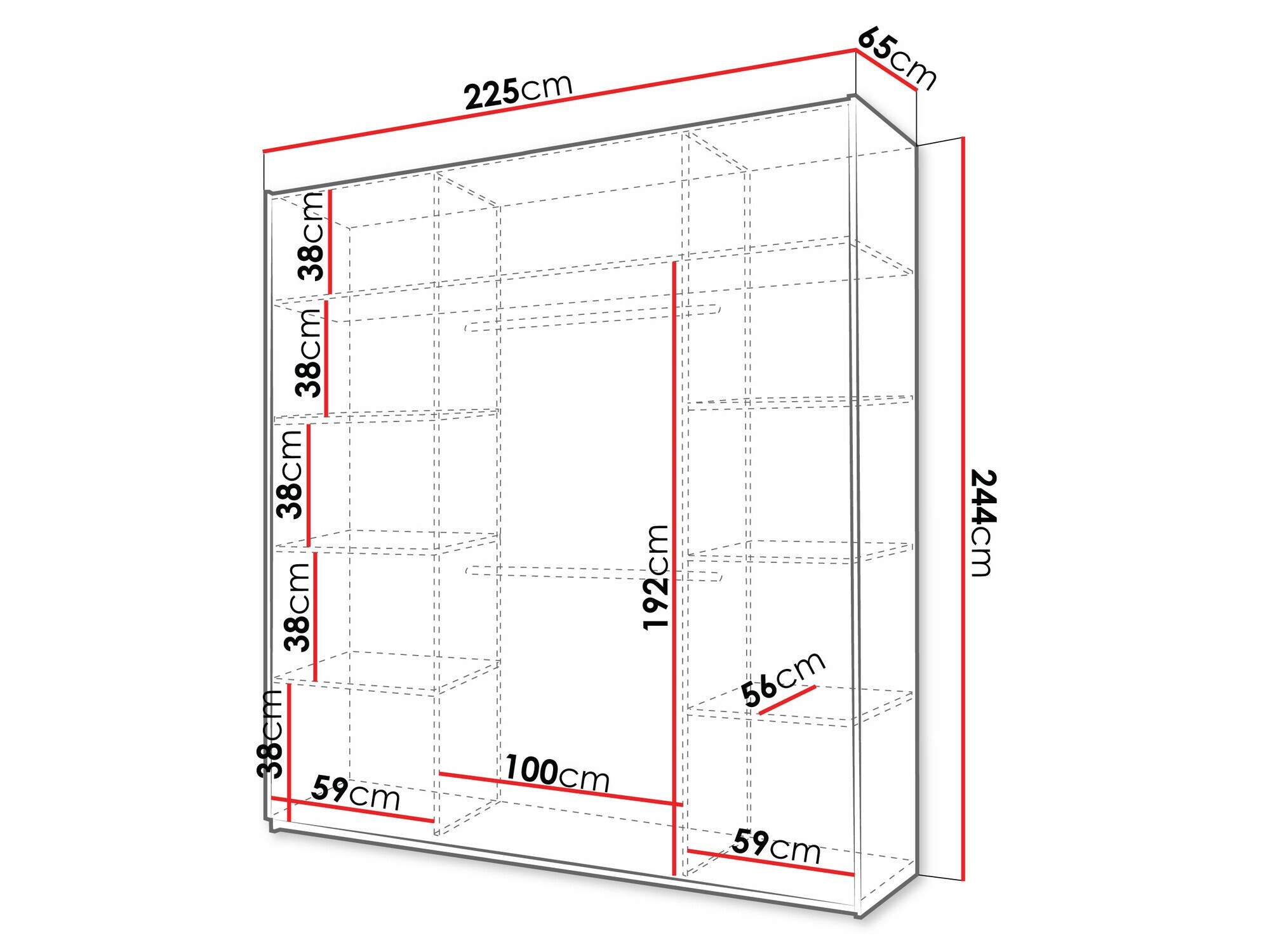 Sehr schöner und geräumiger Kleiderschrank. Der Zusammenbau selbst war nicht kompliziert, nur dass es sehr schwierig ist, ihn in einem 2,5 m hohen Blockraum anzuheben. Meiner Meinung nach sollte der Raum mindestens 10-15 cm höher sein als der Schrank. Ansonsten ist es in jeder Hinsicht sehr in Ordnung und der Spiegel ist sehr klar und verformt sich überhaupt nicht. Auch der Lieferservice war einwandfrei.