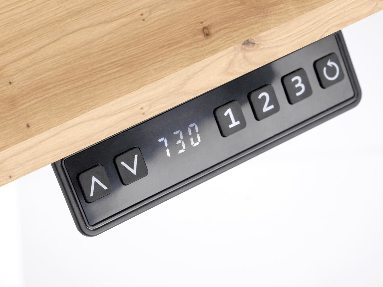 Table compacte et facilement réglable. La hauteur peut être ajustée à la fois en maintenant les flèches haut et bas et en appuyant sur le bouton de hauteur spécifique. Appuyez sur le bouton et partez - la table prend la hauteur requise. J'apprécie vraiment une telle fonctionnalité. Le moteur est silencieux.