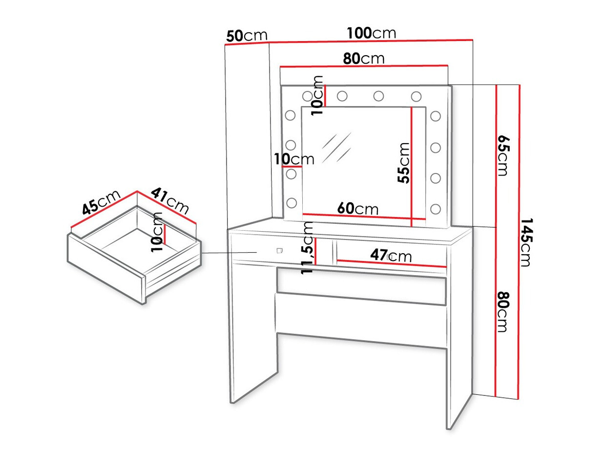 Der Schminktisch ist gut, es ist zufriedenstellend, dass man viele Dinge in die Schubladen legen kann, die Beleuchtung ist zufriedenstellend. Die Qualität wird als gut bewertet!