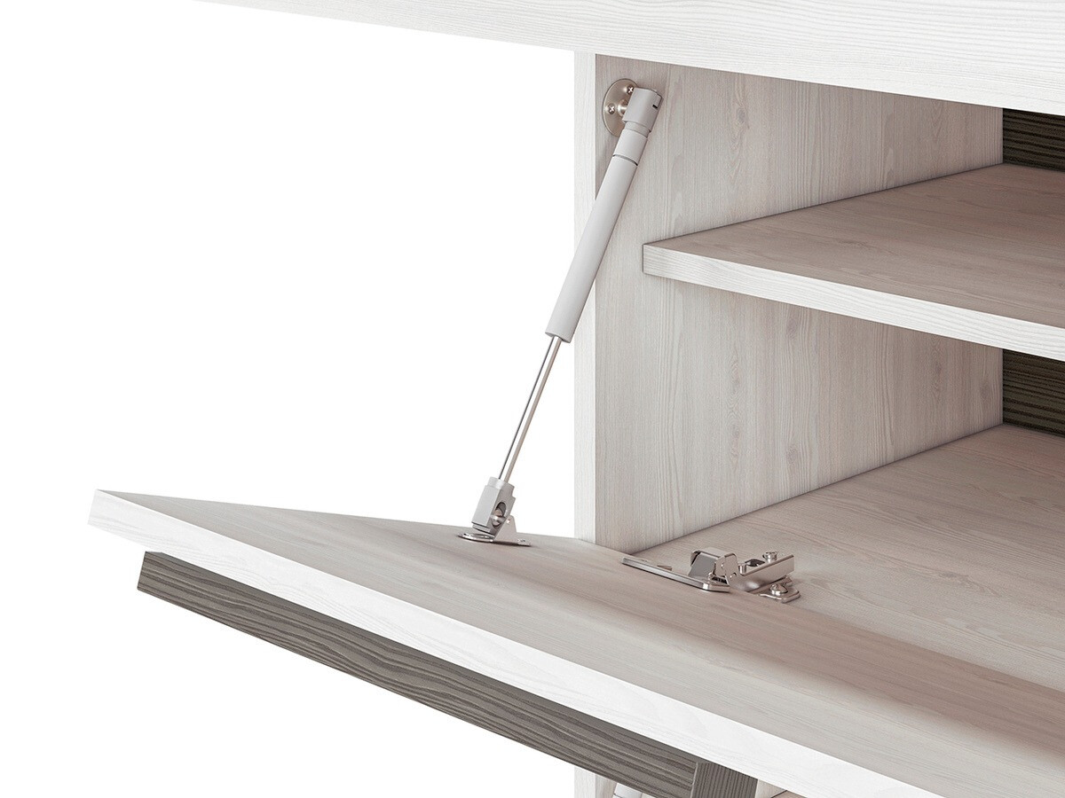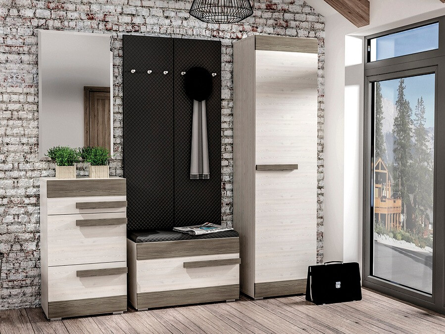 Si vous recherchez une collection de meubles polyvalente adaptée à différents espaces de la maison, cette collection est la solution idéale. Les pièces de cette collection conviennent aux salons, aux chambres, aux entrées ou aux chambres d'enfants. L'accent de cette collection est mis sur le confort et le beau design adaptable à divers goûts. La combinaison de couleurs pin blanchi et gris est polyvalente et facile à assortir. Les surfaces des meubles sont résistantes aux rayures mineures et leurs bords sont protégés par une bande ABS spéciale, garantissant ainsi moins de soucis d'usure rapide. Les meubles sont livrés avec des pieds et des poignées en plastique, qui se fondent parfaitement dans le design global sans le surcharger. Les pièces de vitrine intègrent du verre trempé, qui est plus durable et plus sûr que le verre ordinaire. Une caractéristique pratique et universelle du meuble est que les portes peuvent être montées au choix sur le côté droit ou gauche. De plus, les meubles offrent des espaces de rangement fermés et ouverts, contribuant ainsi au rangement organisé des objets. Pour ceux qui souhaitent ajouter plus de caractère unique à leur intérieur, un éclairage LED à économie d'énergie peut être commandé en plus pour ces pièces.
