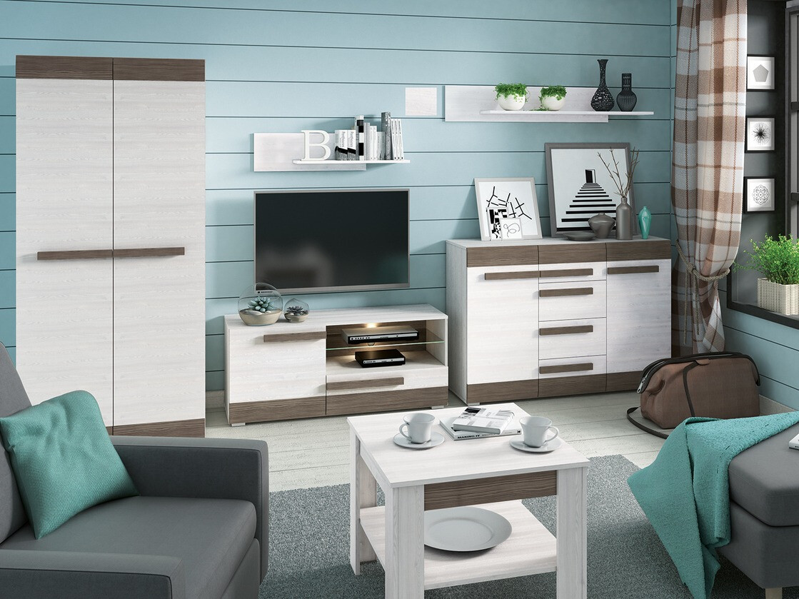 Si vous recherchez une collection de meubles polyvalente adaptée à différents espaces de la maison, cette collection est la solution idéale. Les pièces de cette collection conviennent aux salons, aux chambres, aux entrées ou aux chambres d'enfants. L'accent de cette collection est mis sur le confort et le beau design adaptable à divers goûts. La combinaison de couleurs pin blanchi et gris est polyvalente et facile à assortir. Les surfaces des meubles sont résistantes aux rayures mineures et leurs bords sont protégés par une bande ABS spéciale, garantissant ainsi moins de soucis d'usure rapide. Les meubles sont livrés avec des pieds et des poignées en plastique, qui se fondent parfaitement dans le design global sans le surcharger. Les pièces de vitrine intègrent du verre trempé, qui est plus durable et plus sûr que le verre ordinaire. Une caractéristique pratique et universelle du meuble est que les portes peuvent être montées au choix sur le côté droit ou gauche. De plus, les meubles offrent des espaces de rangement fermés et ouverts, contribuant ainsi au rangement organisé des objets. Pour ceux qui souhaitent ajouter plus de caractère unique à leur intérieur, un éclairage LED à économie d'énergie peut être commandé en plus pour ces pièces.