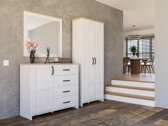 Si vous aimez la simplicité du style scandinave et des idées d'intérieur, alors cette collection est ce que vous recherchez. La collection de meubles respire la simplicité et la chaleur. La collection est dominée par des couleurs vives et claires. Les façades lumineuses et les armoires des meubles ont quelques notes de motif bois, ce qui lui donne du naturel et se marie bien avec les plans de travail. Cette collection impressionne par la simplicité des façades et les petites poignées qui servent d'accent. Avec les meubles de la collection, vous pouvez installer un salon ou un couloir élégant. Un design non seulement confortable mais aussi pratique, accueillera les choses les plus importantes et garantira que l'utilisation des meubles est aussi agréable que possible. Le mécanisme de fermeture silencieux du meuble a la particularité d'empêcher les portes et les tiroirs de se fermer rapidement. Grâce à des amortisseurs spéciaux, les portes et les tiroirs sont arrêtés juste avant la fermeture et rentrés lentement, afin de ne pas faire de bruit. Les meubles auront fière allure dans les intérieurs clairs et sombres et créeront une ambiance d'intérieur scandinave.