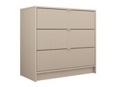 La maison devient de plus en plus un espace où se déroulent les rituels quotidiens, où nous travaillons, nous détendons et recherchons la tranquillité d'esprit. Les tendances montrent que cette évolution inspire un désir croissant de confort et d'authenticité dans nos espaces de vie. Cette collection de meubles a été soigneusement conçue pour répondre à ce besoin. Des rainures douces et des lignes cannelées confèrent à chaque pièce un caractère distinctif, tandis que les poignées en métal doré ajoutent une touche d'élégance raffinée. La collection s'intègre facilement dans une variété de pièces, qu'il s'agisse du salon, de la chambre à coucher ou du bureau à domicile, et se marie harmonieusement avec un large éventail de styles d'intérieur. Elle convient particulièrement bien aux intérieurs classiques modernes, minimalistes et aux tons doux.