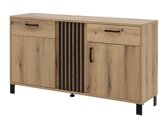Une collection de meubles au design attirant et pratique qui assure un aspect esthétique et un rangement pratique dans n'importe quelle pièce. Les meubles de cette collection sont ornés de pieds et de poignées en plastique noir, ce qui leur donne de l'expressivité. Le design moderne et contrasté est complété par la couleur chêne, combinée à des détails noirs. Cette combinaison n'est pas seulement attrayante sur le plan visuel, elle crée également un sentiment de naturel et de chaleur à la maison. Les étagères et les portes en verre de la collection sont en verre trempé, plus sûr et plus durable que le verre ordinaire. En outre, il est possible de commander séparément un éclairage LED à économie d'énergie pour la collection, ce qui ajoutera un accent moderne et plus lumineux à votre maison. Avec cette collection, vous pouvez facilement créer un salon ou un couloir harmonieux, ou compléter tout autre espace de votre maison.