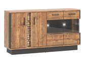 Avec les meubles de cette collection, votre intérieur ne passera pas inaperçu. La collection propose une large gamme de meubles qui conviennent le mieux aux salons ou aux chambres. Grâce à la combinaison de couleurs « April » chêne et noir, le mobilier est particulièrement adapté aux intérieurs industriels. L'insert à motif bois est un accent authentique de cette collection, qui confère au meuble un caractère unique, et les poignées en plastique noir se fondent parfaitement dans le design. Les façades des meubles sont en panneaux de particules, qui sont protégés par un ruban ABS spécial qui protège les bords des meubles contre les dommages. Les tiroirs et les portes se fermeront sans aucun bruit supplémentaire car les meubles de cette collection disposent d'un mécanisme de fermeture silencieux. Les vitrines de meubles utilisent du verre trempé traité thermiquement. Ce type de verre est beaucoup plus solide et plus durable que le verre ordinaire. De plus, un éclairage LED à économie d'énergie peut être allumé dans les vitrines pour les soirées romantiques. Un meuble très pratique de cette collection est un transformateur de table basse. Ce type de table vous permettra de profiter d'une table basse régulière qui ne prendra pas beaucoup de place, et si nécessaire, vous pourrez la transformer en table à manger pouvant accueillir toute la famille ou des invités. La collection propose également deux types d'armoires - une plus étroite avec des portes battantes et une plus grande avec des portes coulissantes et un miroir. Associez les meubles de cette collection aux teintes claires des murs pour donner du caractère à la pièce. En l'associant à des murs et des meubles de couleur foncée, vous créerez un véritable intérieur de style industriel.
