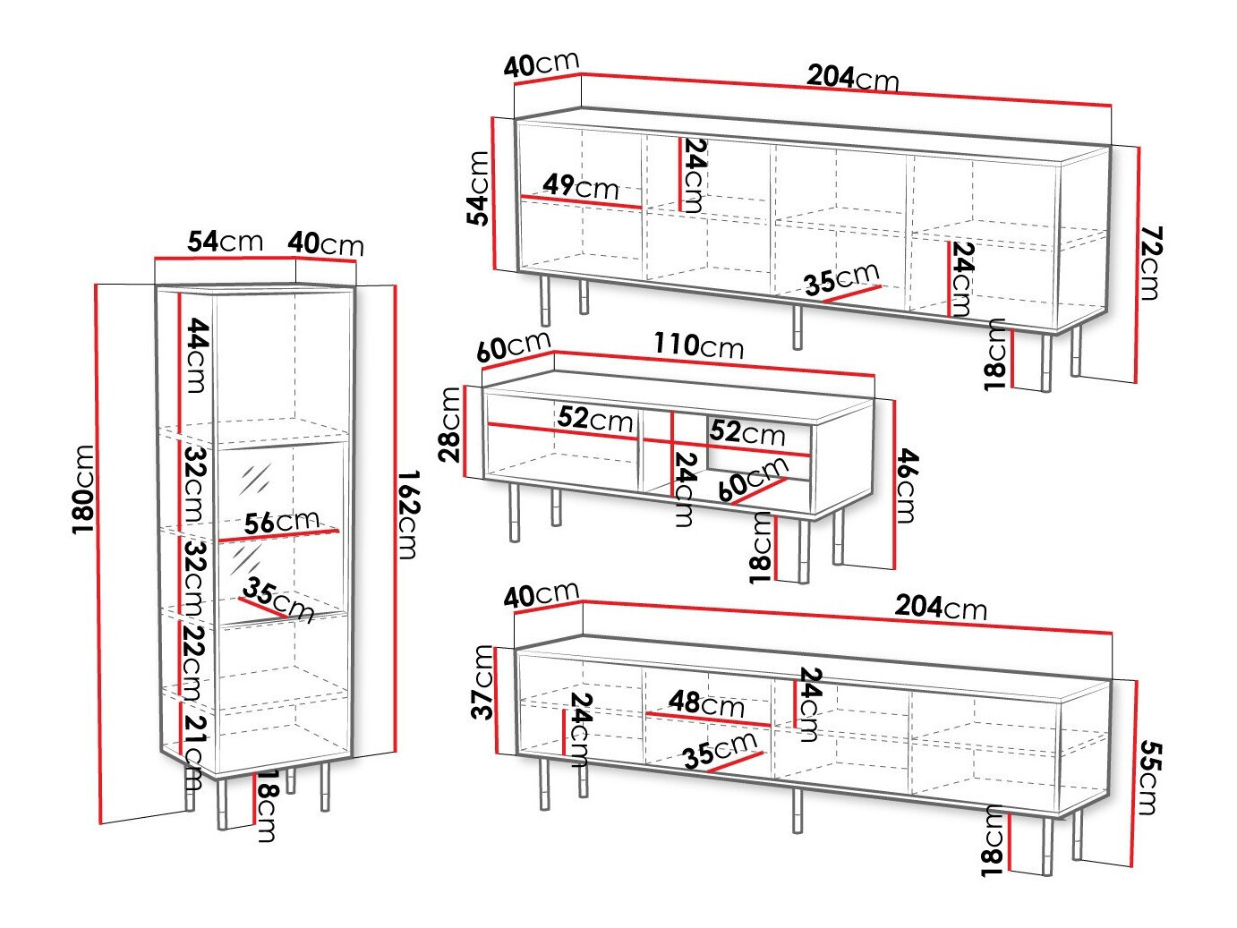 55 x 204 x 40 cm