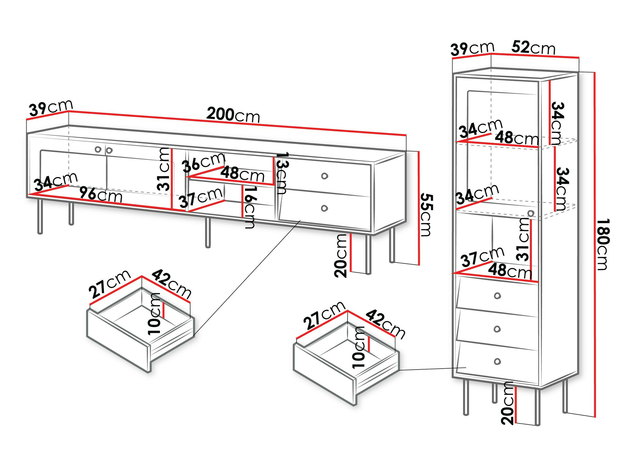 55 x 200 x 39 cm