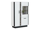 Cette collection de meubles de salon est dominée par le blanc brillant complété par des détails noirs. Les éléments imitation bois confèrent au meuble un caractère exclusif. Les façades des meubles sont ornées de poignées en plastique noir. Le verre trempé utilisé dans la collection est plus résistant aux effets mécaniques que le verre ordinaire. L'éclairage LED à économie d'énergie en option créera une atmosphère unique. Les bords des meubles sont protégés par un ruban de finition spécial qui les protège des dommages mineurs. Le meuble est doté d'un mécanisme de fermeture silencieux qui empêche les tiroirs et les portes de se fermer rapidement. Si vous cherchez à créer un intérieur de maison exclusif et élégant, nous vous invitons à faire attention à cette collection !