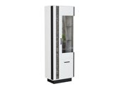 Cette collection de meubles de salon est dominée par le blanc brillant complété par des détails noirs. Les éléments imitation bois confèrent au meuble un caractère exclusif. Les façades des meubles sont ornées de poignées en plastique noir. Le verre trempé utilisé dans la collection est plus résistant aux effets mécaniques que le verre ordinaire. L'éclairage LED à économie d'énergie en option créera une atmosphère unique. Les bords des meubles sont protégés par un ruban de finition spécial qui les protège des dommages mineurs. Le meuble est doté d'un mécanisme de fermeture silencieux qui empêche les tiroirs et les portes de se fermer rapidement. Si vous cherchez à créer un intérieur de maison exclusif et élégant, nous vous invitons à faire attention à cette collection !