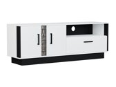 Cette collection de meubles de salon est dominée par le blanc brillant complété par des détails noirs. Les éléments imitation bois confèrent au meuble un caractère exclusif. Les façades des meubles sont ornées de poignées en plastique noir. Le verre trempé utilisé dans la collection est plus résistant aux effets mécaniques que le verre ordinaire. L'éclairage LED à économie d'énergie en option créera une atmosphère unique. Les bords des meubles sont protégés par un ruban de finition spécial qui les protège des dommages mineurs. Le meuble est doté d'un mécanisme de fermeture silencieux qui empêche les tiroirs et les portes de se fermer rapidement. Si vous cherchez à créer un intérieur de maison exclusif et élégant, nous vous invitons à faire attention à cette collection !