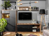 La collection impressionne par son design moderne, complété par les formes d’inspiration minimaliste. Ceci est un example de style d’intérieur moderne. Les motifs décoratifs sur les façades donnent au mobilier un charme supplémentaire. Les meubles de cette collection s’intégreront parfaitement dans l’espace de séjour. Il y aura certainement assez de place pour tout, car les meubles ne manquent pas d’étagères et de grands tiroirs. Lors de la création d’un design, la fonctionnalité est également rappelée. Les tiroirs et les portes ont un mécanisme de fermeture silencieux qui protège la porte et les tiroirs d'une fermeture rapide, sans causer de bruit supplémentaire. Les vitrines utilisent du verre trempé, qui se caractérise par sa résistance et sa durabilité. De plus, il est possible d'intégrer un éclairage LED dans les vitrines, ce qui mettra en valeur les détails de l'intérieur des vitrines. Choisissez votre couleur préférée et commencez à apporter des modifications à l'intérieur de la maison.
