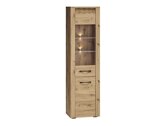 Les façades des meubles sont imprimées du motif en bois que qui rend la collection unique. Les poignées métalliques soulignent encore plus le design exclusif du mobilier. Un caractère supplémentaire est donné par les ornements décoratifs, qui sont accentués par l'éclairage LEDintégré dans les façades des meubles. Vous pouvez également commander un éclairage LED pour vitrines, qui mettra en valeur les détails de l'intérieur. Les façades en «Artisan» chêne, verre trempé, l'éclairage LED et les poignées métalliques rendent la collection unique. Tout est façonné par l'espace parfaitement utilisé dans le mobilier. Par conséquent, vous pourrez placer tous vos objets les plus importants.
