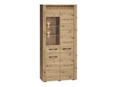 Les façades des meubles sont imprimées du motif en bois que qui rend la collection unique. Les poignées métalliques soulignent encore plus le design exclusif du mobilier. Un caractère supplémentaire est donné par les ornements décoratifs, qui sont accentués par l'éclairage LEDintégré dans les façades des meubles. Vous pouvez également commander un éclairage LED pour vitrines, qui mettra en valeur les détails de l'intérieur. Les façades en «Artisan» chêne, verre trempé, l'éclairage LED et les poignées métalliques rendent la collection unique. Tout est façonné par l'espace parfaitement utilisé dans le mobilier. Par conséquent, vous pourrez placer tous vos objets les plus importants.