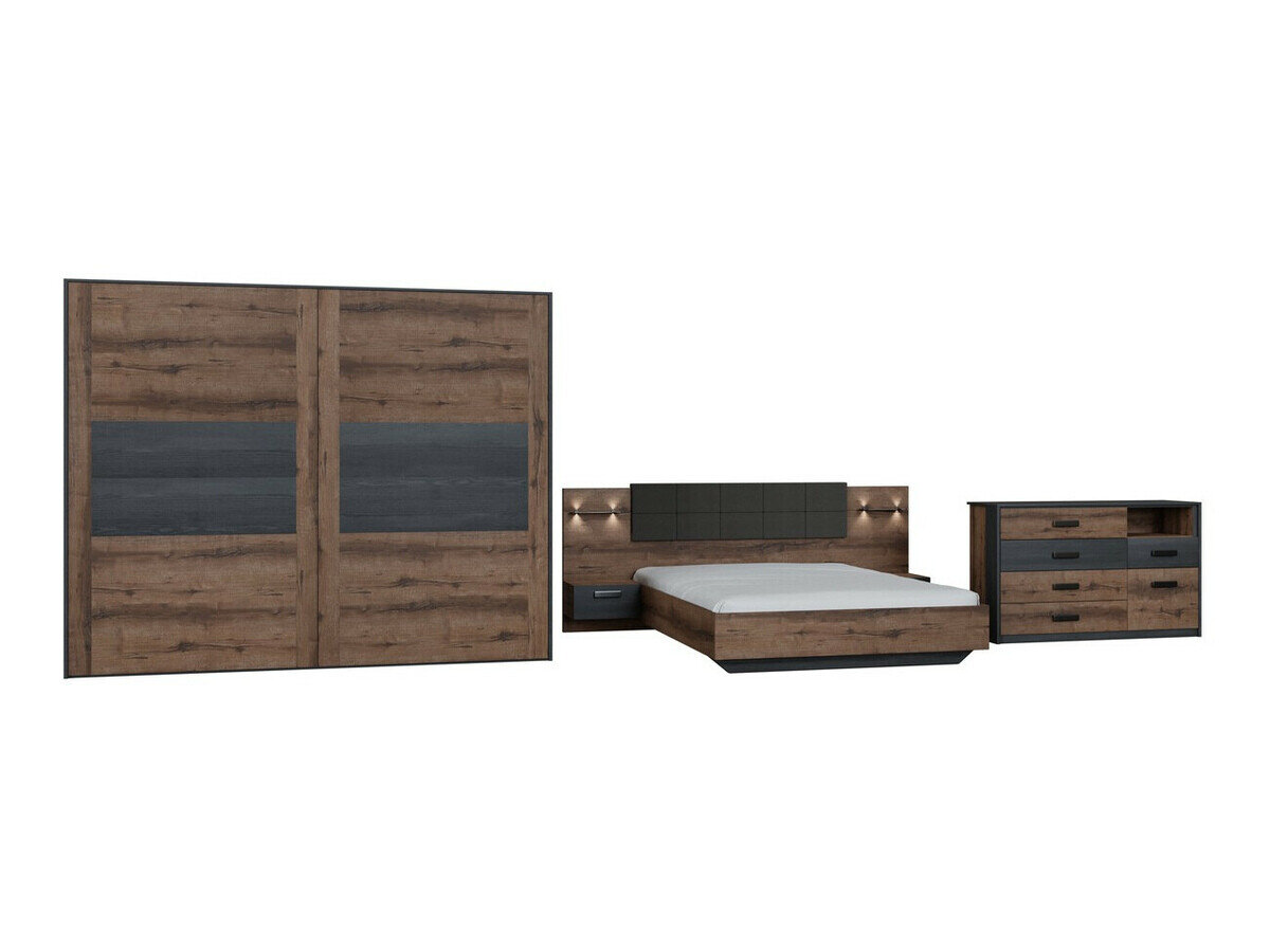 Les amateurs de style industriel doivent voir cette collection. Les façades de la collection sont dominées par les couleurs sombres du «Monastère» et du chêne noir. La couleur chêne foncé est parfaitement complétée par la garniture noire, qui confère au design du meuble un caractère unique. Des poignées noires assez massives ont été choisies, qui s'intègrent parfaitement dans l'ensemble. La couleur et les motifs du bois créent un design de mobilier industriel unique. La collection utilise du verre trempé, plus sûr et avec une plus grande résistance mécanique que le verre ordinaire. Pour l'intérieur de la chambre, vous pouvez choisir des lits de plusieurs tailles différentes avec ou sans sommier. L'ensemble de lit comprend un sommier tapissier avec un mécanisme de levage à gaz. Vous pouvez ajouter une touche supplémentaire à la collection en commandant en plus un éclairage LED économe en énergie. Les meubles de la collection ont des espaces de rangement ouverts et fermés, ce qui les rend adaptés au stockage pratique des effets personnels.