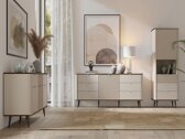 Cette collection de meubles se caractérise par sa douceur, obtenue grâce à des angles légèrement arrondis et des lignes harmonieuses. L'une des caractéristiques marquantes de son design est le verre trempé texturé, qui rehausse subtilement les meubles en leur apportant texture et caractère. Les poignées métalliques minimalistes préservent l'esthétique épurée et s'intègrent parfaitement même dans les intérieurs modernes. Le mécanisme de fermeture en douceur garantit un confort quotidien. Cette collection allie un style classique raffiné et des solutions de design modernes.