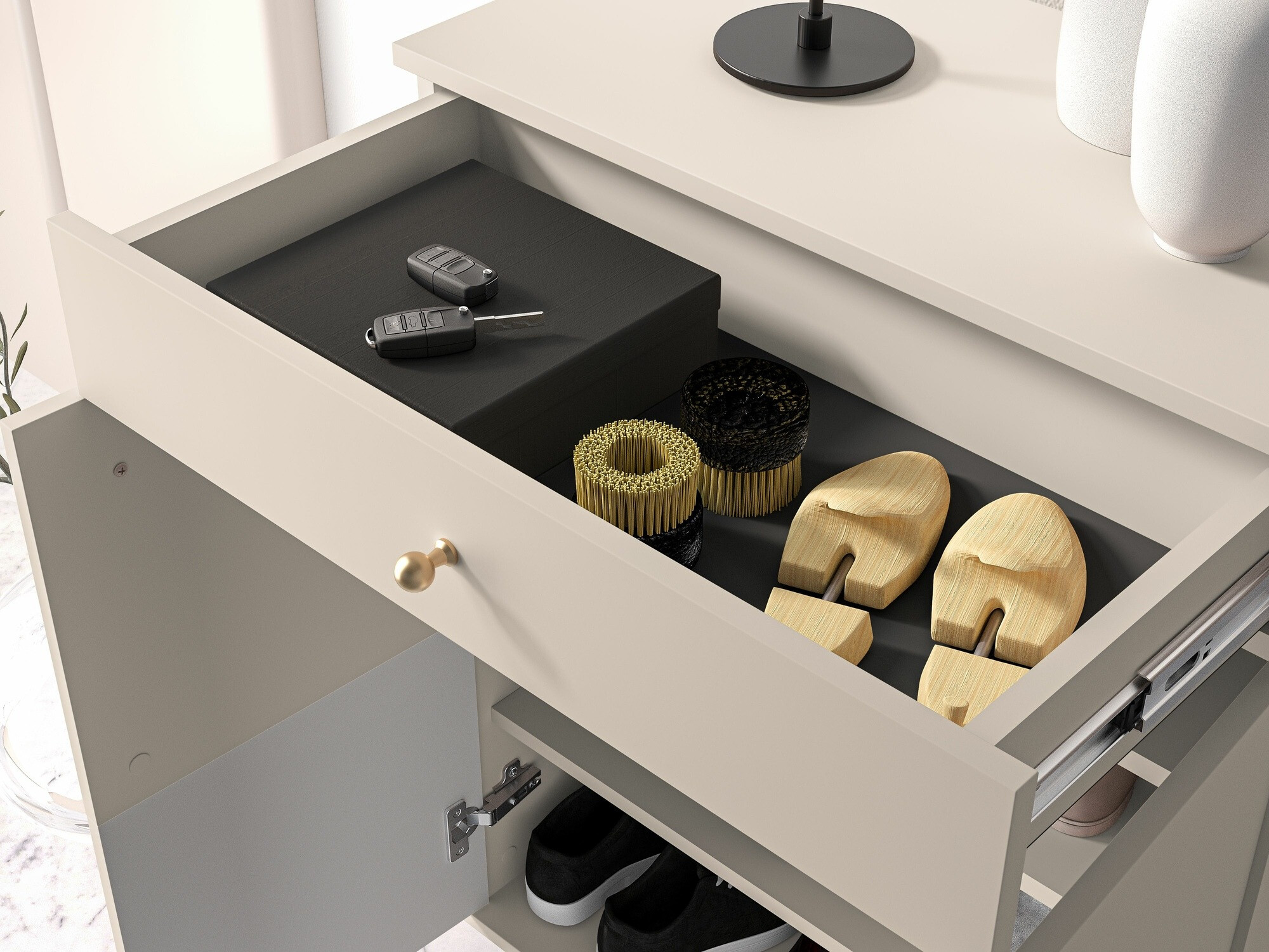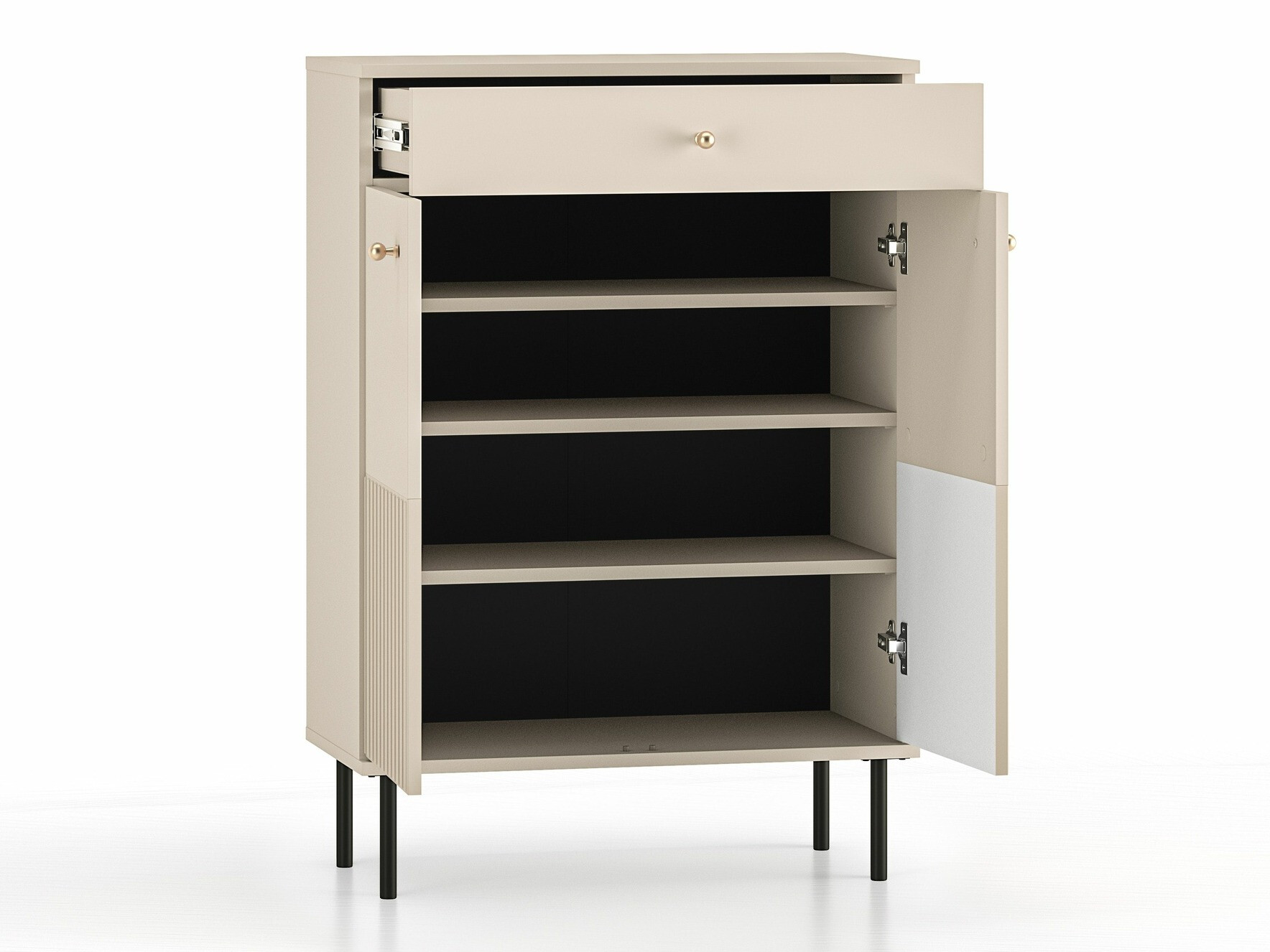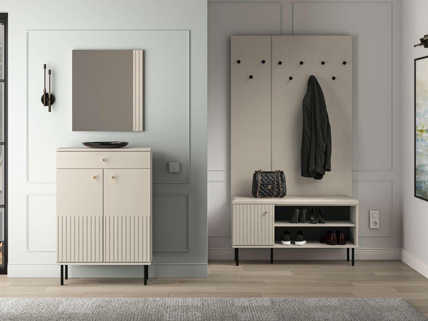 Der Schrank ist sehr robust. Er steht auch ohne Wandbefestigung stabil. Er sieht sehr elegant aus.