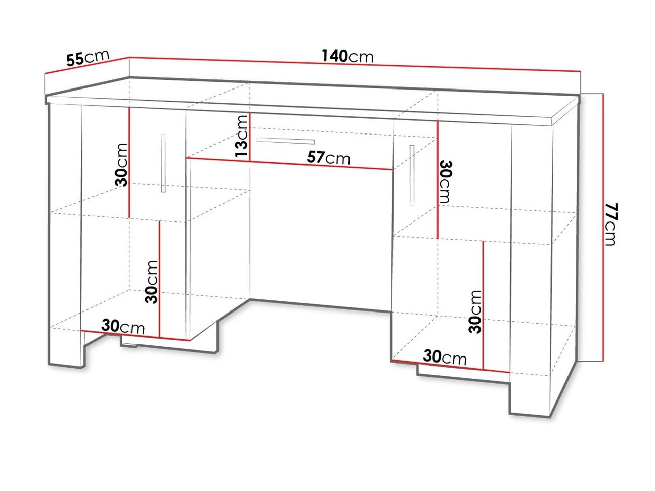 Es hat ein interessantes Design, es ist stabil, es bietet Platz für viele Dinge, die Höhe der Schränke erleichtert die Reinigung des Bodens darunter, das Brett vor den Beinen schont die Wand dahinter.