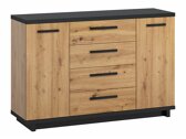 Cette collection de mobilier propose des meubles pour le salon et la chambre à coucher. Le design moderne et les lignes élégantes se complètent pour créer une combinaison parfaite. La collection attire le regard par ses couleurs chaudes et ses motifs bois. Les panneaux noirs mats sont assortis aux façades en chêne. Cette combinaison de couleurs se complète, soulignant la forme du meuble. Le verre trempé est utilisé dans les vitrines, qui est plus résistant que le verre ordinaire. Un lit au design exclusif deviendra le point culminant de la chambre. Tête de lit moelleuse, boîte à linge de lit, mécanisme de levage à gaz, tout ce dont vous avez besoin pour un repos parfait. Les bords des meubles de cette collection sont protégés par du ruban de finition, qui est généralement utilisé pour protéger les bords des panneaux.