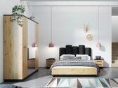 Cette collection de mobilier propose des meubles pour le salon et la chambre à coucher. Le design moderne et les lignes élégantes se complètent pour créer une combinaison parfaite. La collection attire le regard par ses couleurs chaudes et ses motifs bois. Les panneaux noirs mats sont assortis aux façades en chêne. Cette combinaison de couleurs se complète, soulignant la forme du meuble. Le verre trempé est utilisé dans les vitrines, qui est plus résistant que le verre ordinaire. Un lit au design exclusif deviendra le point culminant de la chambre. Tête de lit moelleuse, boîte à linge de lit, mécanisme de levage à gaz, tout ce dont vous avez besoin pour un repos parfait. Les bords des meubles de cette collection sont protégés par du ruban de finition, qui est généralement utilisé pour protéger les bords des panneaux.