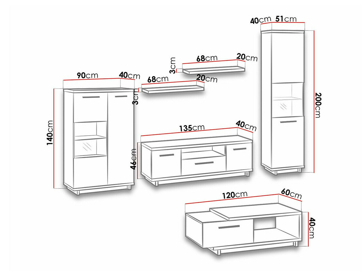 Cette collection de mobilier propose des meubles pour le salon et la chambre à coucher. Le design moderne et les lignes élégantes se complètent pour créer une combinaison parfaite. La collection attire le regard par ses couleurs chaudes et ses motifs bois. Les panneaux noirs mats sont assortis aux façades en chêne. Cette combinaison de couleurs se complète, soulignant la forme du meuble. Le verre trempé est utilisé dans les vitrines, qui est plus résistant que le verre ordinaire. Un lit au design exclusif deviendra le point culminant de la chambre. Tête de lit moelleuse, boîte à linge de lit, mécanisme de levage à gaz, tout ce dont vous avez besoin pour un repos parfait. Les bords des meubles de cette collection sont protégés par du ruban de finition, qui est généralement utilisé pour protéger les bords des panneaux.