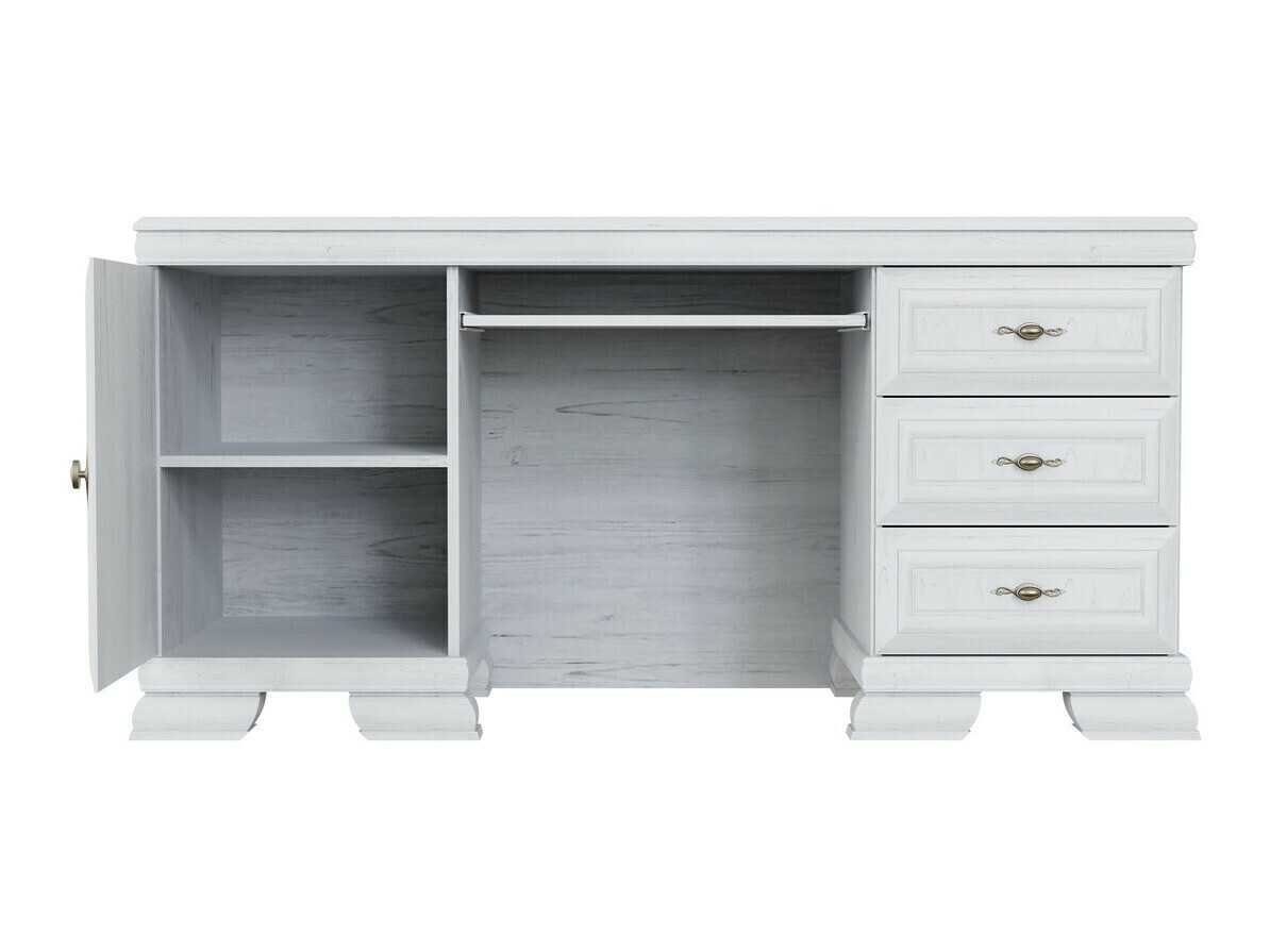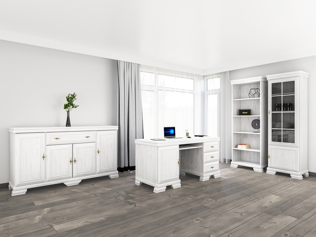 Cette collection de style classique est destinée à ceux qui apprécient le design et l'élégance intemporels. Les meubles de la collection sont ornés de poignées en métal au design exclusif, ce qui donne à chaque pièce un accent luxueux. L'une des caractéristiques les plus importantes de cette collection est sa surface résistante aux rayures, qui garantit la durabilité des meubles. Même après de nombreuses années d'utilisation continue, ces meubles conserveront leur aspect impeccable. Cette collection ne se contente pas d'être élégante, elle accorde également une grande importance à la fonctionnalité. Les étagères et les tiroirs sont spacieux, ce qui vous permet de disposer de suffisamment d'espace pour organiser vos objets. La combinaison du style classique et de l'aspect pratique garantit que cette collection ne décorera pas seulement votre intérieur mais améliorera également la qualité de votre vie quotidienne. Appréciez la beauté du style classique et faites entrer l'élégance intemporelle dans votre maison.