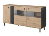 Une collection de meubles qui combine design moderne et fonctionnalité. Avec cette collection, vous pouvez créer un salon très moderne ou améliorer tout autre espace de votre maison. L'esthétique et l'espace de ces meubles vous permettent de ranger divers objets sans encombrer votre intérieur. La collection présente des couleurs anthracite et chêne « Artisan », créant une combinaison unique qui sera élégante dans n'importe quelle pièce. Les pieds et les poignées en métal confèrent une apparence élégante et une grande stabilité, garantissant une utilisation pratique. Le design linéaire inspire un sentiment de grâce et de légèreté au meuble. Les vitrines de la collection sont en verre trempé, plus sûr et plus durable que le verre ordinaire. Tous les meubles de la collection ont également des bords protégés et sont compatibles avec un aspirateur robot.