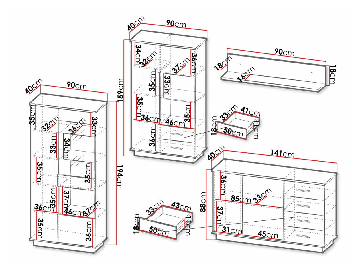 Cette collection de meubles contribuera à créer une atmosphère cosy et chaleureuse dans votre maison. Les façades décoratives et les poignées en plastique noir ajoutent du caractère au meuble et donnent du charme à l'ensemble de l'intérieur. Le mobilier de la vitrine est en verre trempé, plus sûr et plus résistant que le verre ordinaire traité thermiquement. Les panneaux MDF sont également utilisés dans la production de meubles, car ils sont très résistants à la rupture et à la flexion. Pour plus de confort dans la pièce, les meubles avec éclairage LED peuvent être commandés séparément, améliorant encore la chaleur et l'ambiance de votre maison.