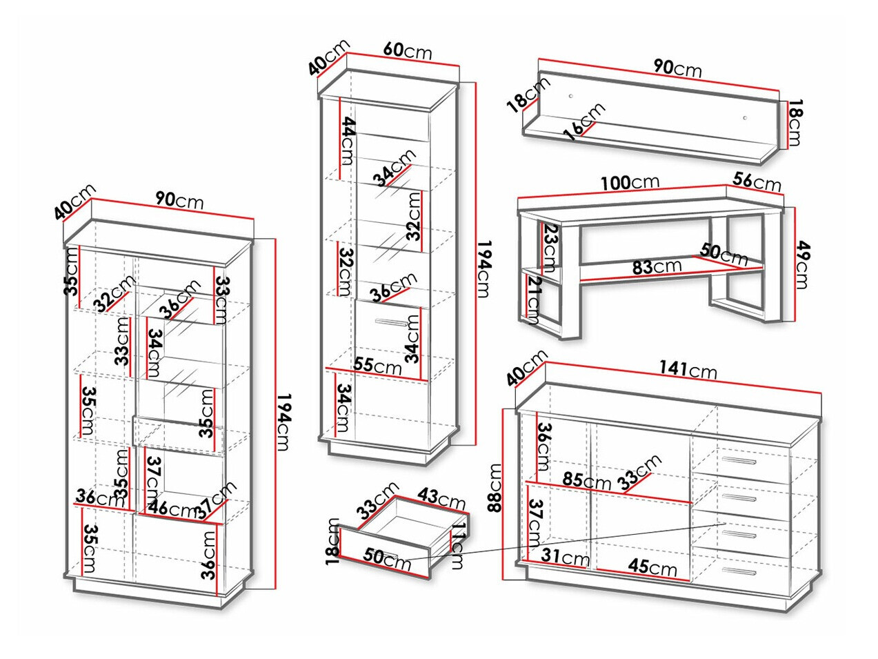 Cette collection de meubles contribuera à créer une atmosphère cosy et chaleureuse dans votre maison. Les façades décoratives et les poignées en plastique noir ajoutent du caractère au meuble et donnent du charme à l'ensemble de l'intérieur. Le mobilier de la vitrine est en verre trempé, plus sûr et plus résistant que le verre ordinaire traité thermiquement. Les panneaux MDF sont également utilisés dans la production de meubles, car ils sont très résistants à la rupture et à la flexion. Pour plus de confort dans la pièce, les meubles avec éclairage LED peuvent être commandés séparément, améliorant encore la chaleur et l'ambiance de votre maison.