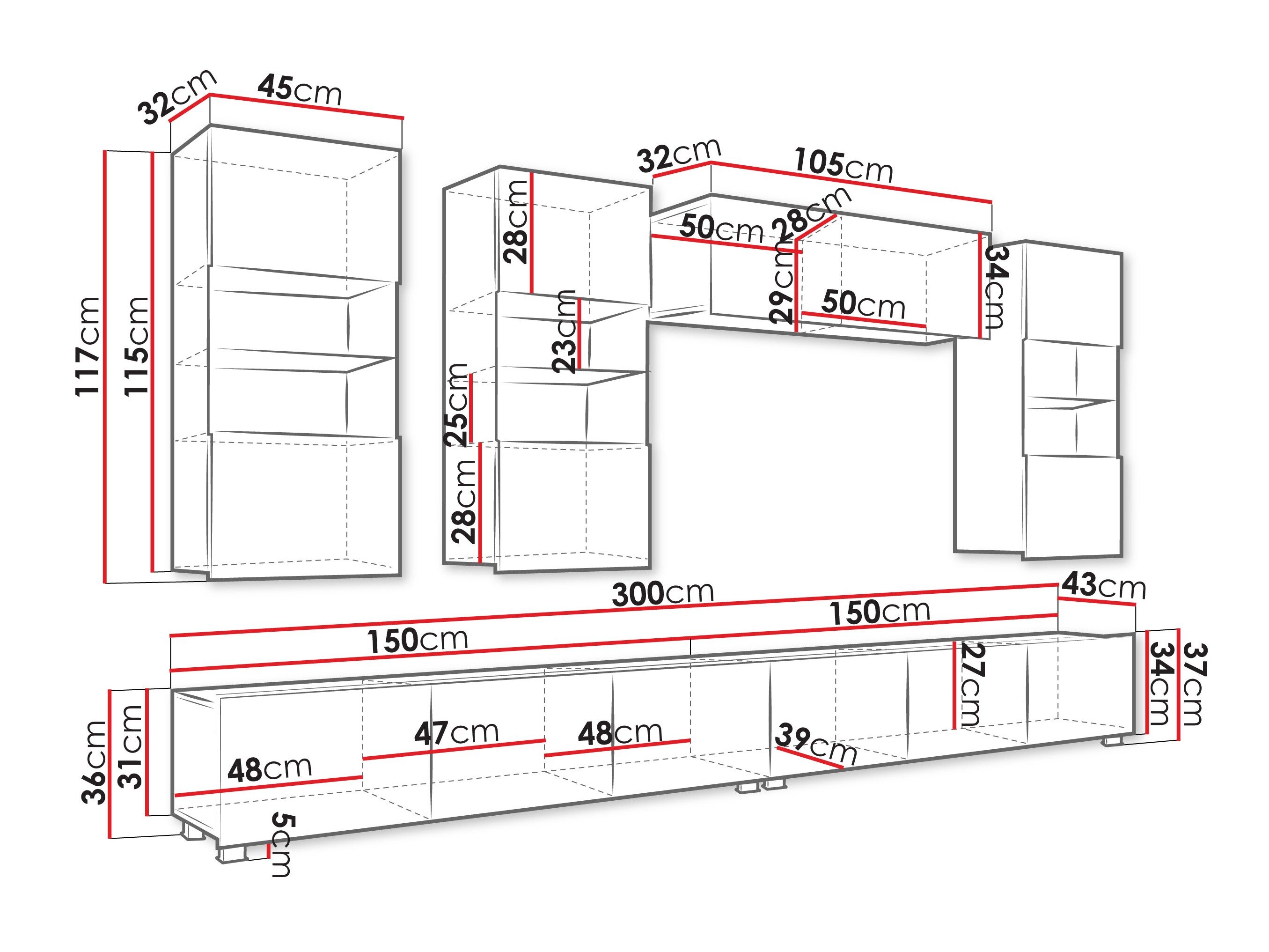 34 x 105 x 32 cm