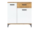 Informations sur la fixation au mur. Les meubles suspendus ou fixés au mur ne sont pas livrés avec des vis de fixation, vous devez donc vous en occuper individuellement. Les différents types de murs nécessitent des vis spécifiques, voire des profondeurs de perçage différentes. Choisissez le matériel de fixation en fonction du poids du meuble et du type de mur (cloison sèche, maçonnerie, bois, etc.). Pour garantir la qualité et la sécurité, utilisez des vis conçues spécifiquement pour votre type de mur.