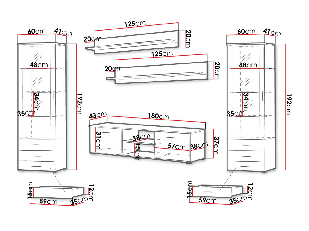 37 x 180 x 43 cm
