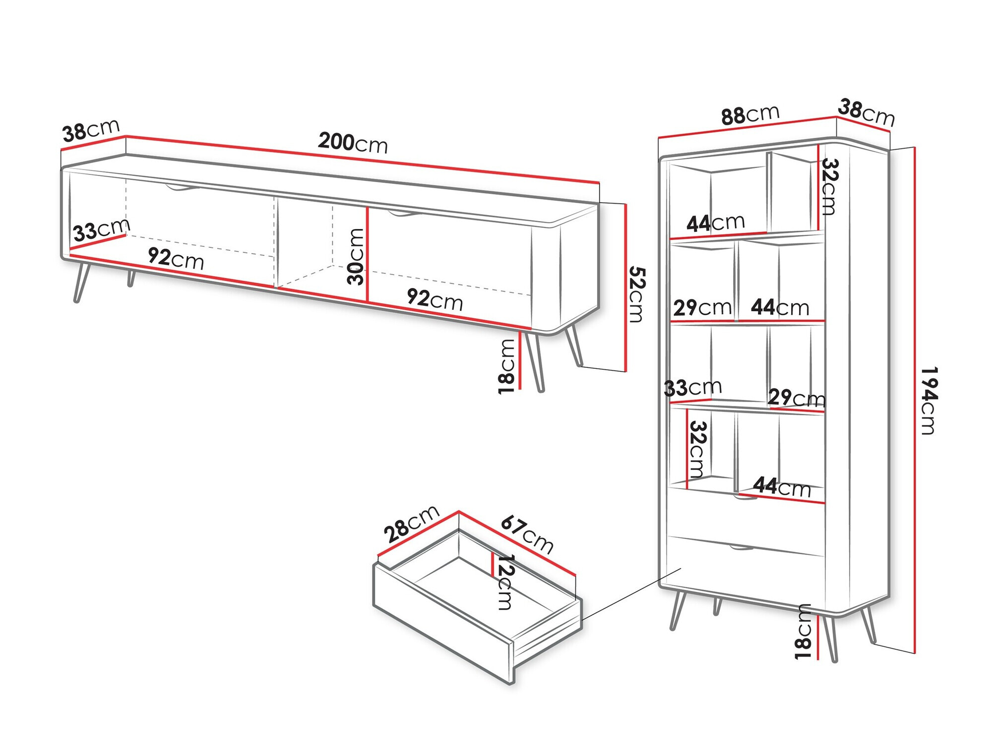 52 x 200 x 38 cm