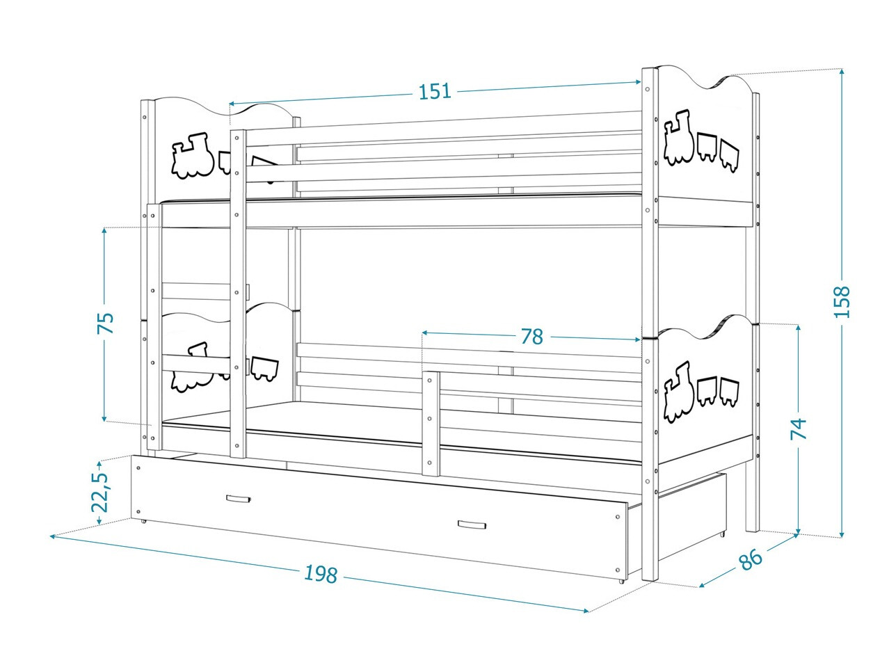 - 80 x 190 cm