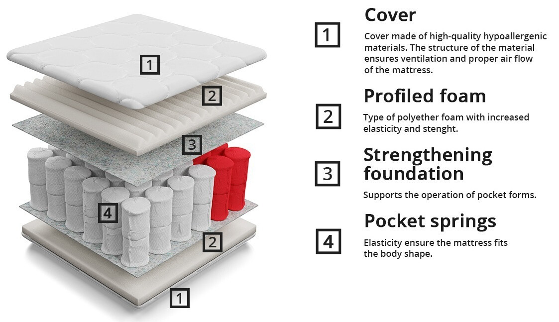 Wir haben uns im Vorfeld für diese Matratze entschieden. 5 Jahre sind vergangen, die Matratze hat sich nicht verformt, die perfekte Hart/Weich-Kombination. Taschenfederkernmatratzen halten länger. Deshalb haben wir für das neue Bett genau diese Matratze gewählt.