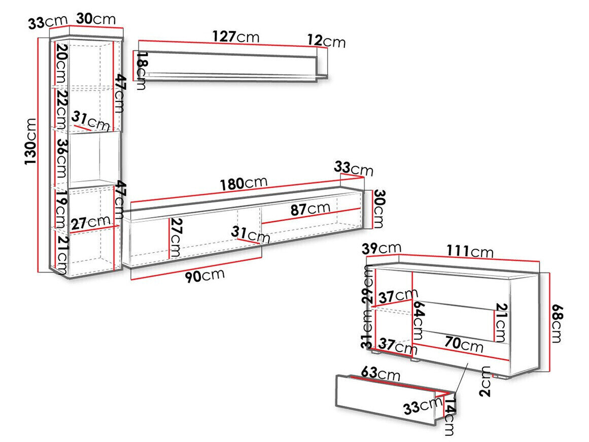 Ensemble de salon Sarasota 132 (Chêne wotan + Blanc brillant)