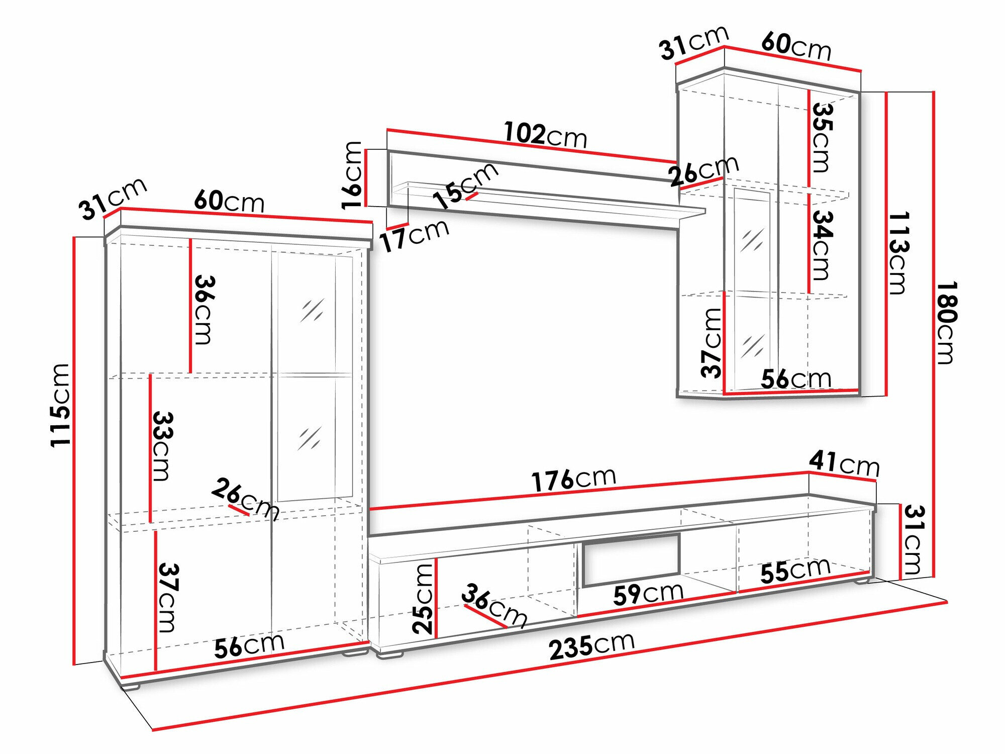 31 x 176 x 41 cm