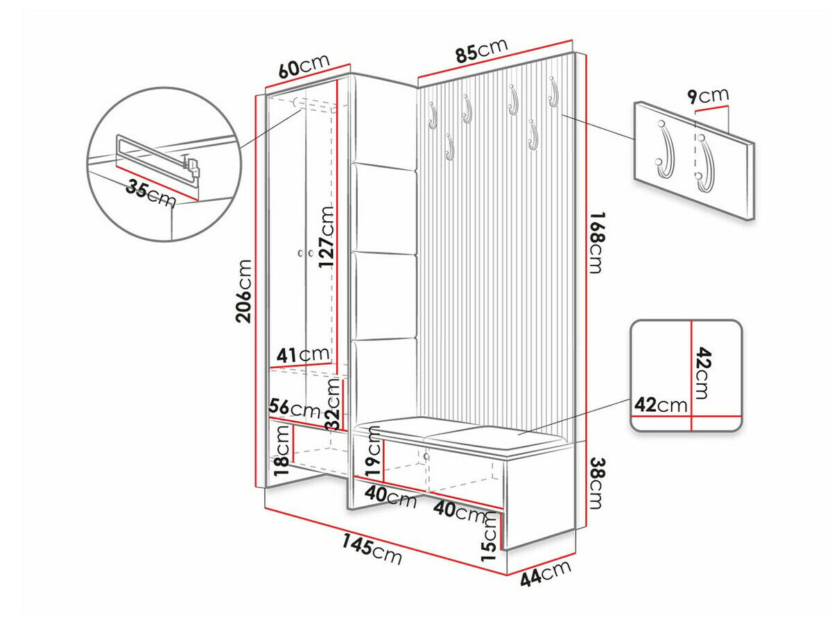 206 cm  145 cm  44 cm