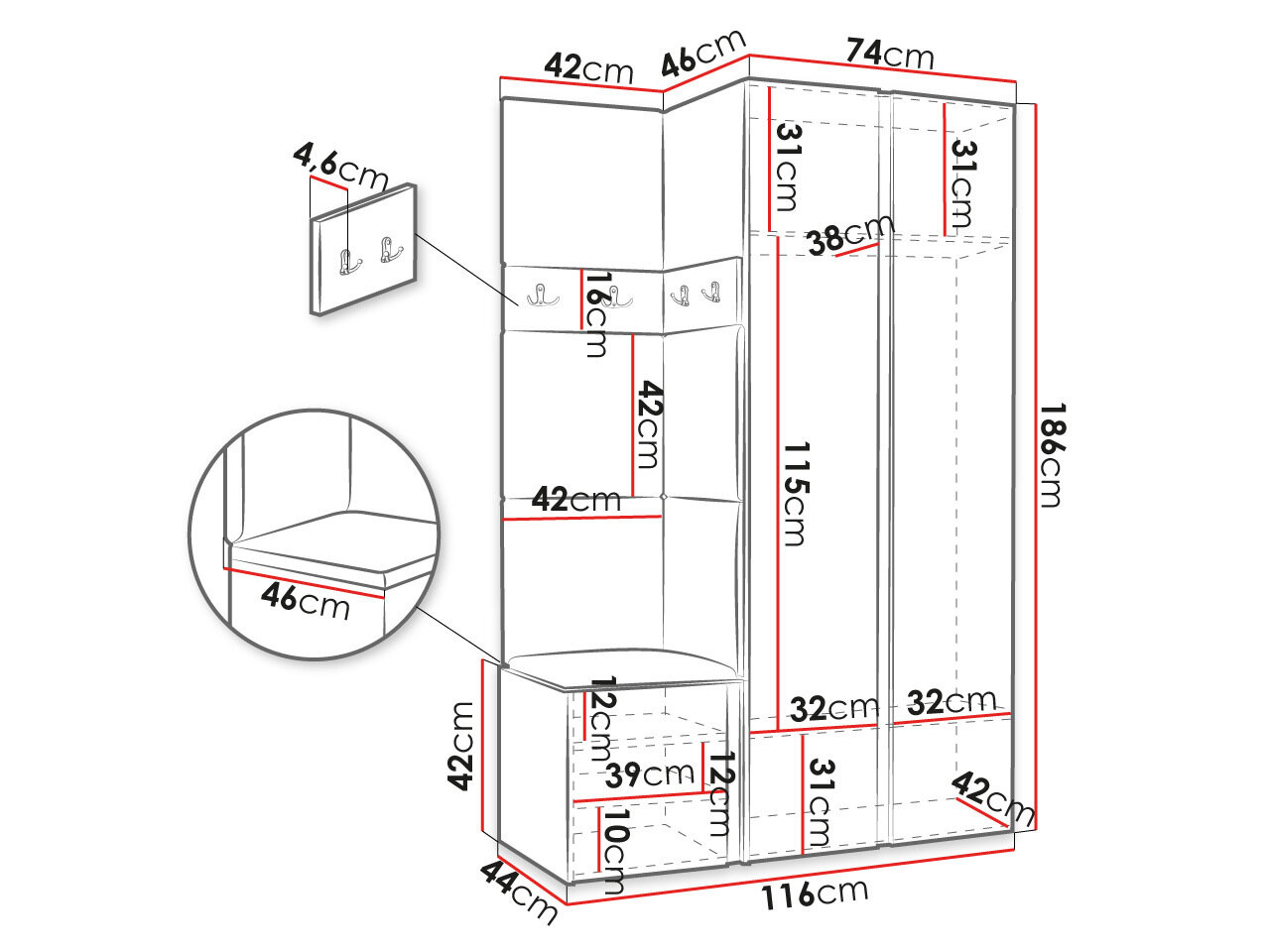 Meuble d'entrée Hartford 350 (Chêne Artisan + Noir)
