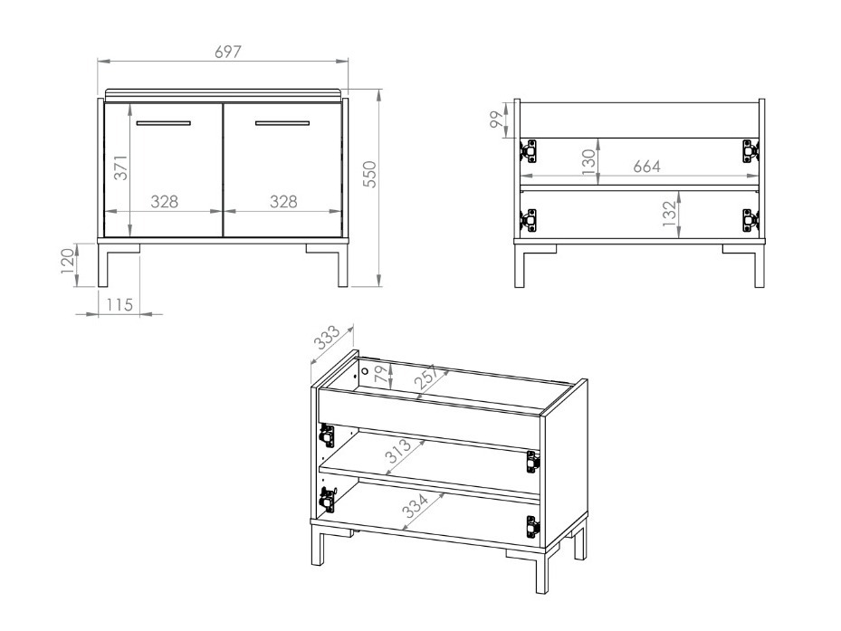 94 x 54.3 x 33.4; 55 x 69.7 x 33.3 cm