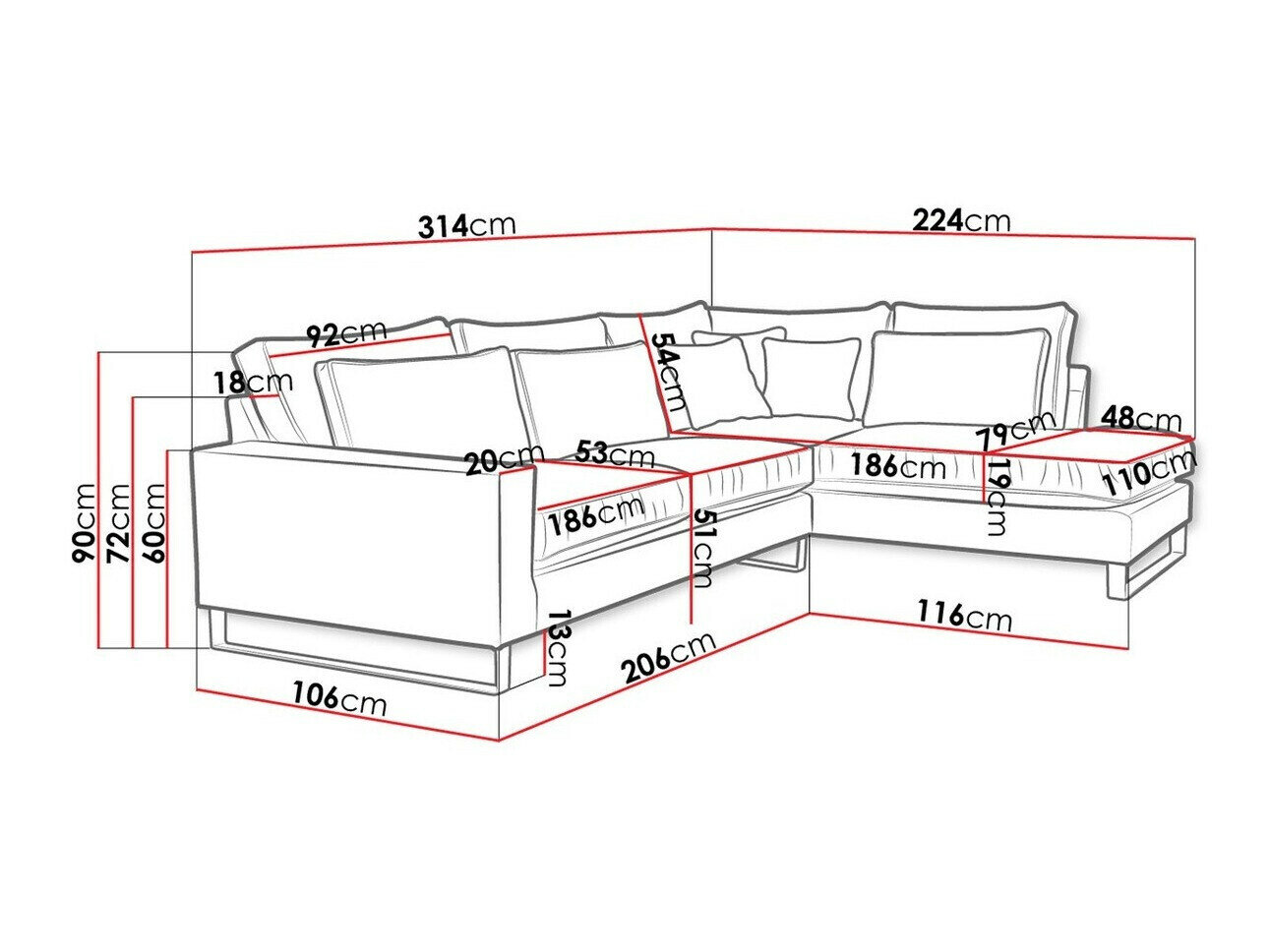 Lorsque vous êtes en face du canapé, le méridien de l'option gauche se trouve à votre gauche. L'option d'angle doit améliorer le passage dans la pièce et permettre le mouvement facile dans l'espace.